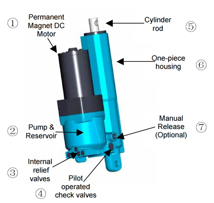 紧凑型电动液压执行器是一个微型的液压系统,由以下功能部件组成: