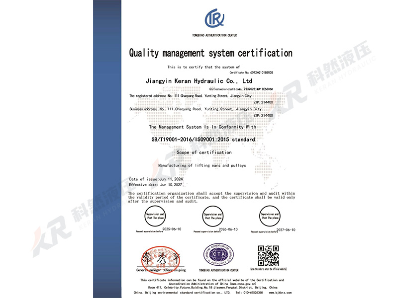 质量管理体系认证证书-英文